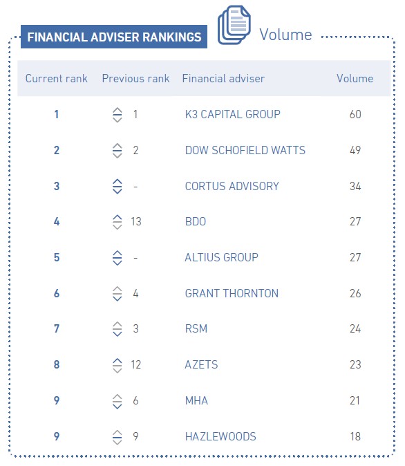 The league table ranks corporate sale advisers on the number of completed transactions which meet Experian’s criteria and with 27 deals Altius Group appears in 5th place as one of the most active advisers in the region, just behind BDO LLP.